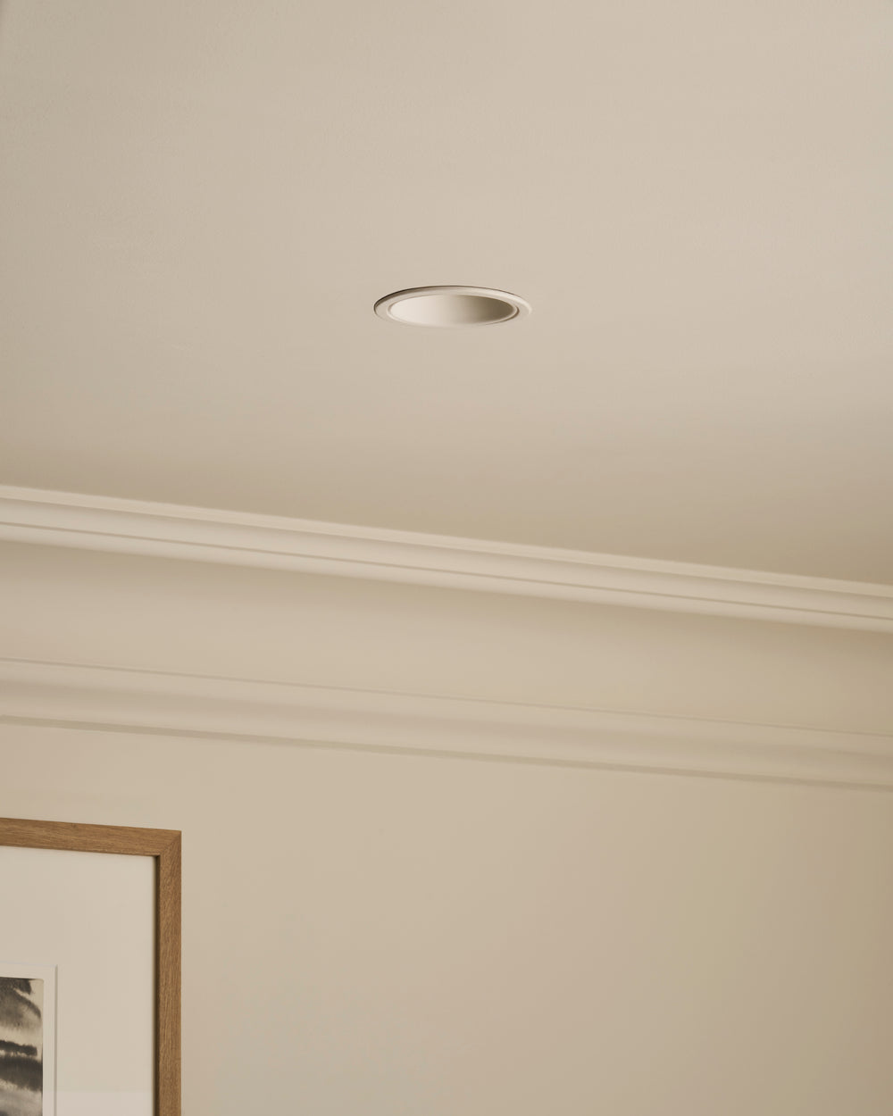 This version of our Buxton downlight comes with a subtle, paintable bezel that provides a clean, finished look. Unlike our trimless style, it doesn’t need plastering into the ceiling.