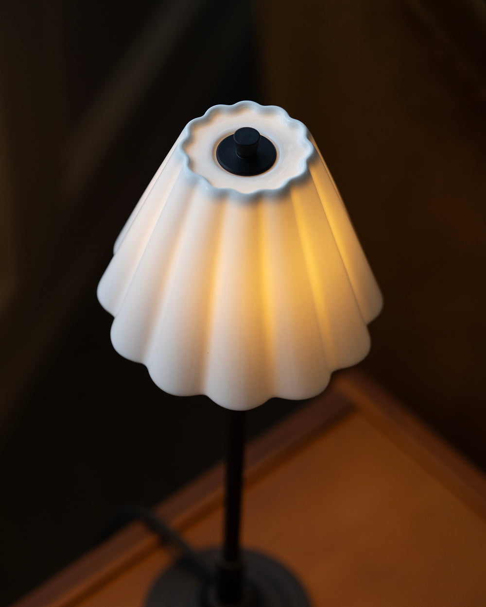 The gently scalloped fine porcelain shade provides a warm, atmospheric glow with absolutely no glare. We’ve opted for a very subtle scallop that won’t go out of style.