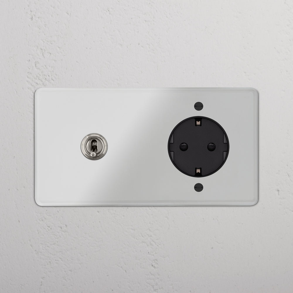 This double mixed switch and socket combines a two-way toggle switch and Schuko socket on one plate.