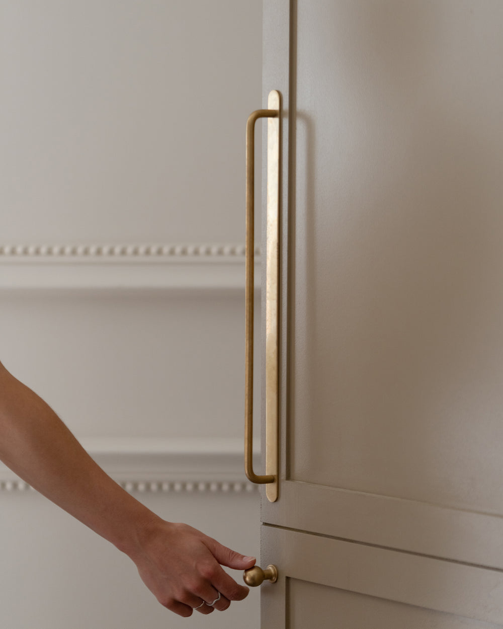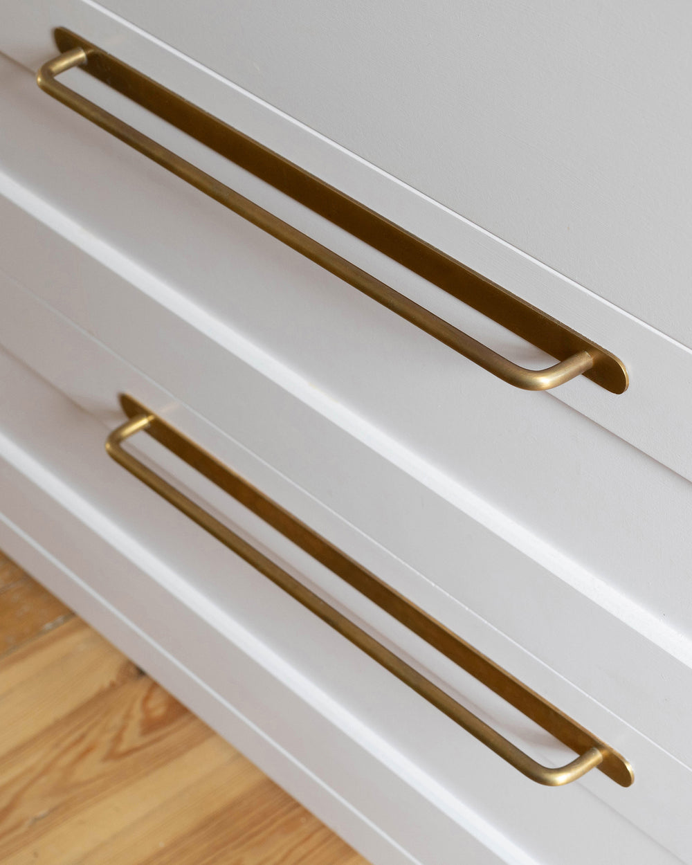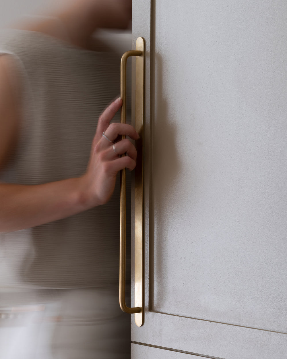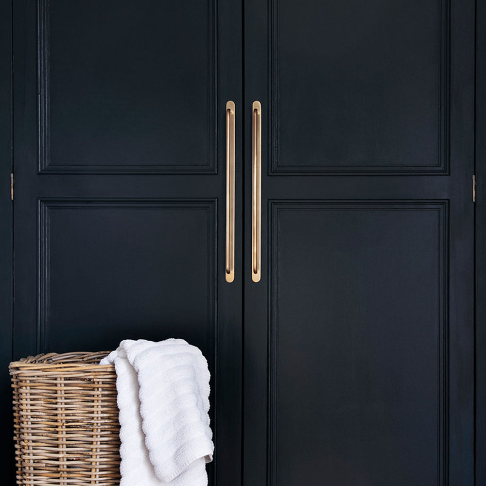A sleek, simple pull handle with a discreet backplate that’ll protect drawers and doors from marks and scratches.