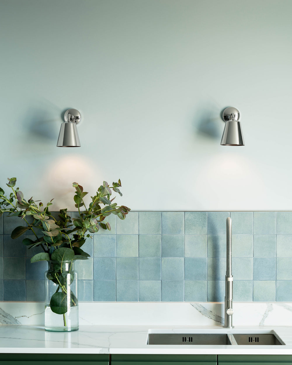 Polished nickel is our answer to chrome. It’s a bit warmer, which we think is more versatile, so you can use it with warm or cool colour palettes.