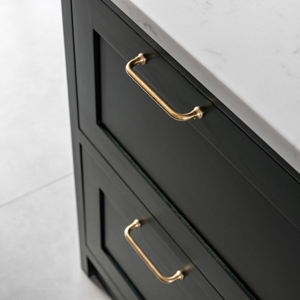 Antique brass is what’s called a ‘living’ finish because it reacts to the air and moisture around it, causing it to darken (especially in the areas you touch most). We’ve given it a head start by ageing it by hand, so it has that antique look right out the box.
