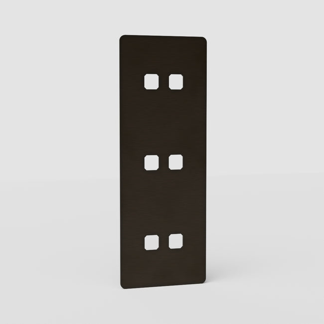 This Kew triple 6x vertical switch plate in bronze works with any six of our bronze toggle switches. If you’d like to add a rotary dimmer switch, you’ll need to use our triple 3x switch plate, which you can fit in a vertical position.