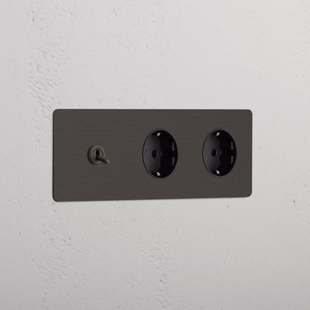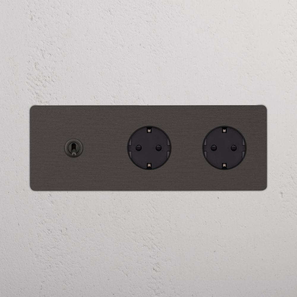 This triple mixed switch and socket combines a two-way toggle switch and two Schuko sockets on one plate.