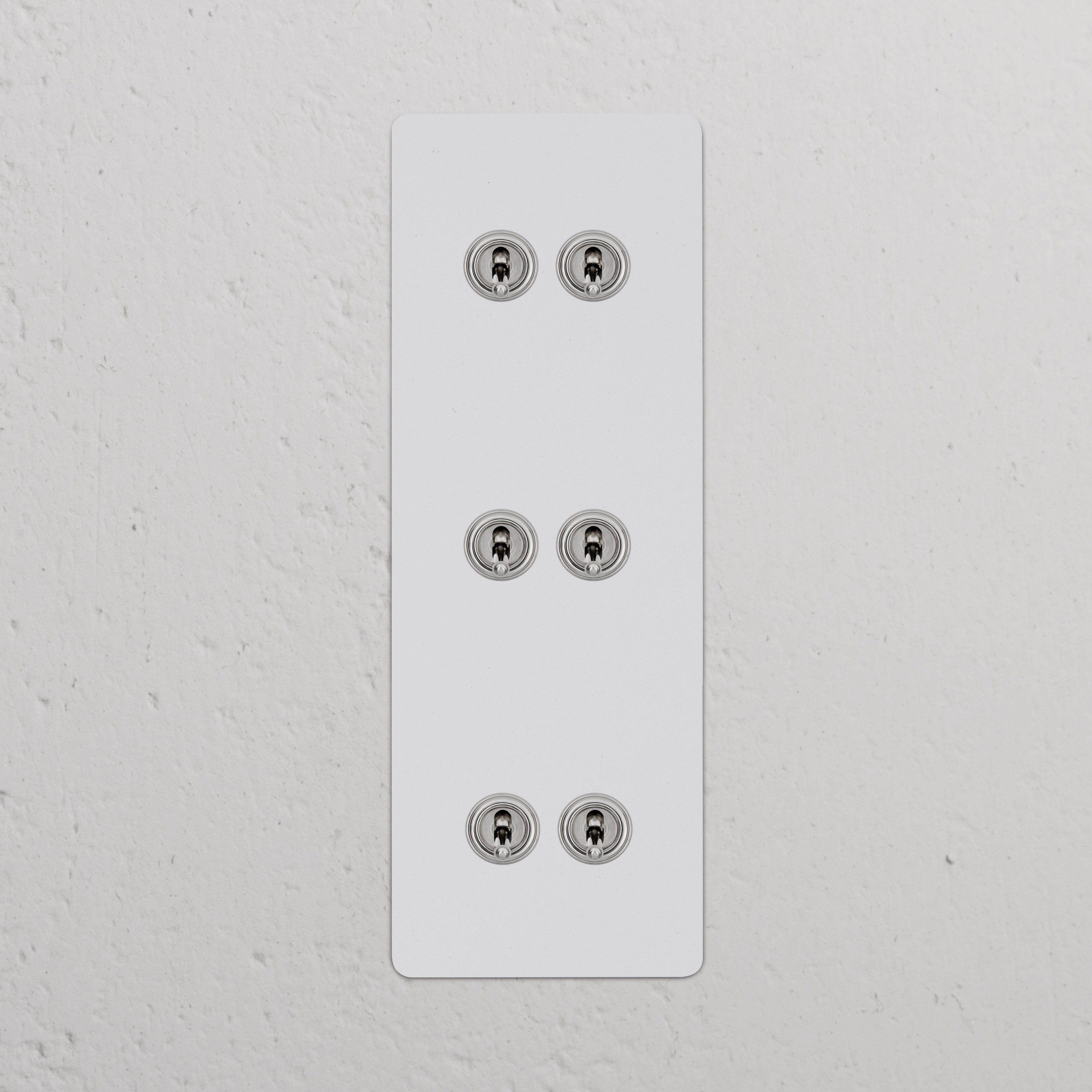 O nosso interruptor de alavanca comutador de escada vertical de seis vias triplo é uma versão moderna do design clássico de dolly. Criámo-lo para ser o mais elegante e intemporal possível em qualquer ambiente interior.