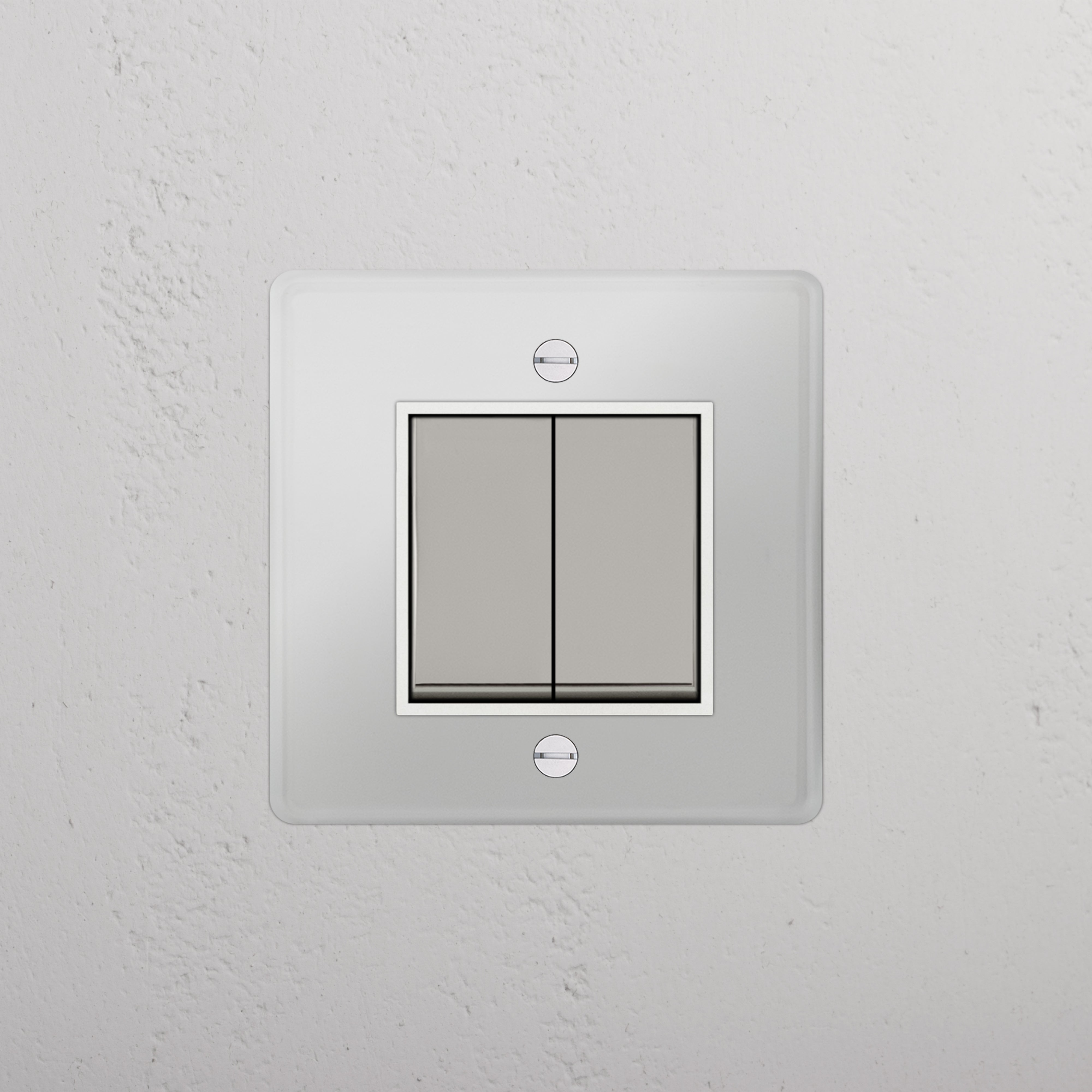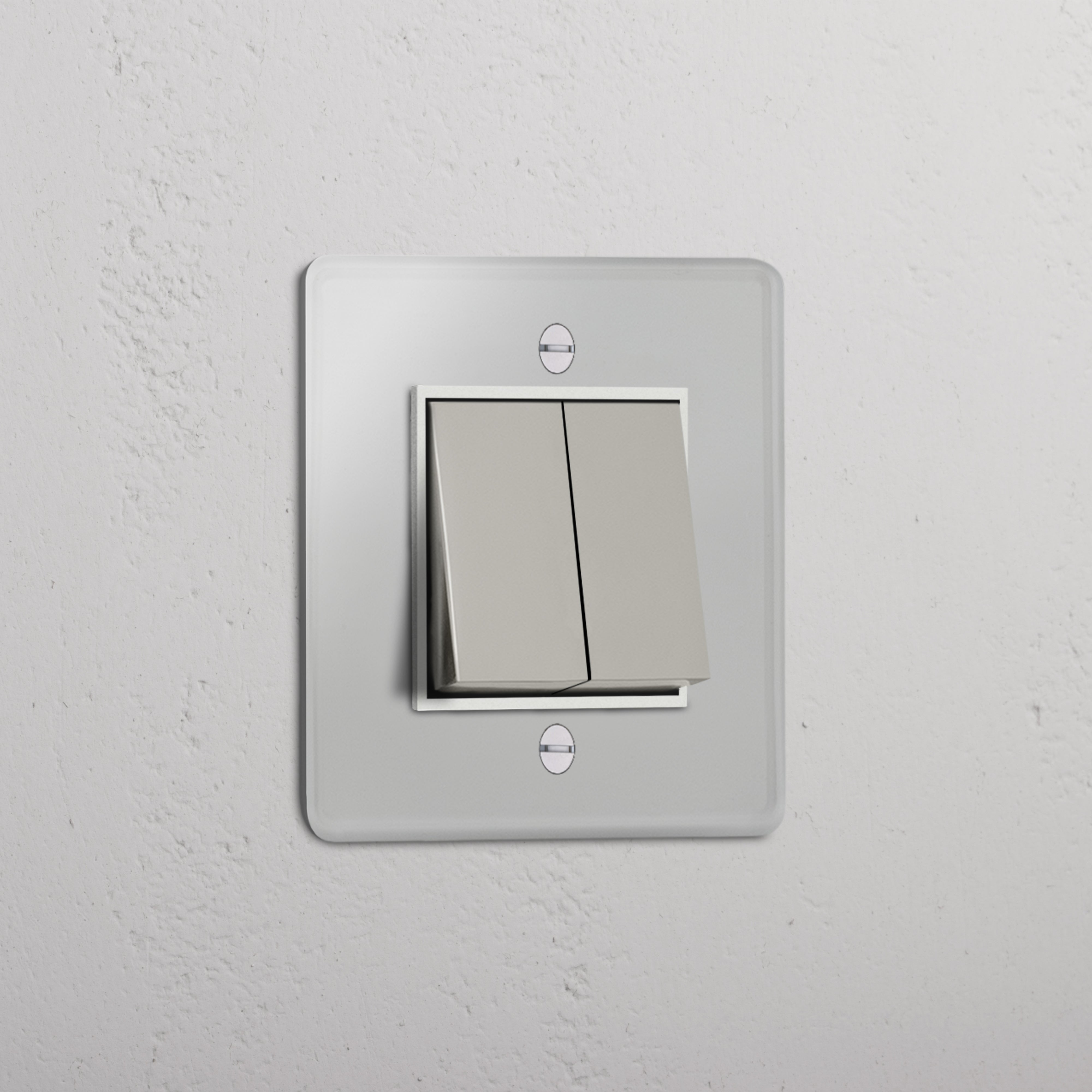 Fabricamos a nossa coleção Transparente em policarbonato, que é mais flexível e duradouro do que o acrílico comum. Os interruptores basculantes são fabricados em latão maciço no nosso acabamento Níquel Polido.