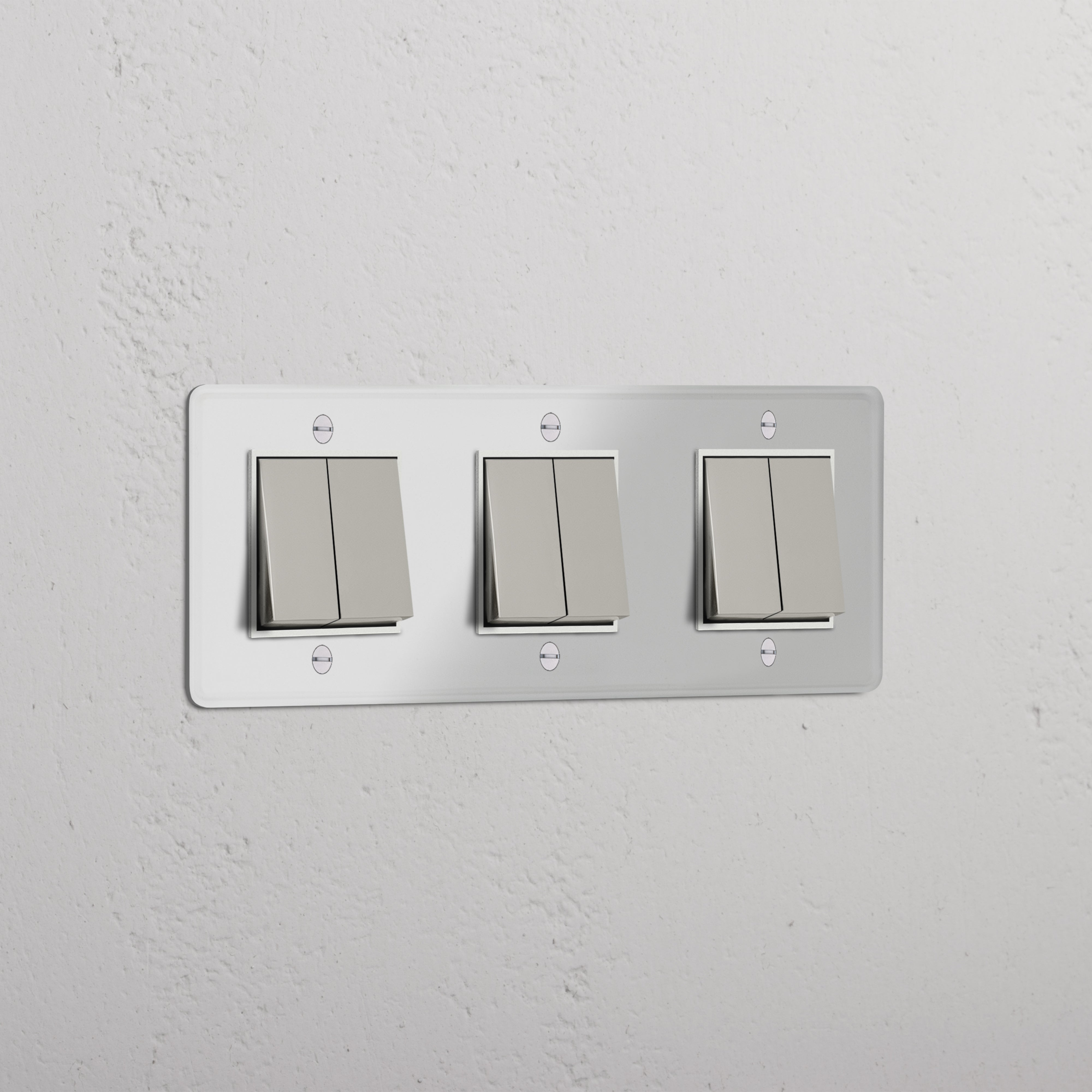 O nosso interruptor basculante comutador de escada de seis vias triplo foi concebido para ser o mais elegante e intemporal possível em qualquer ambiente interior.
