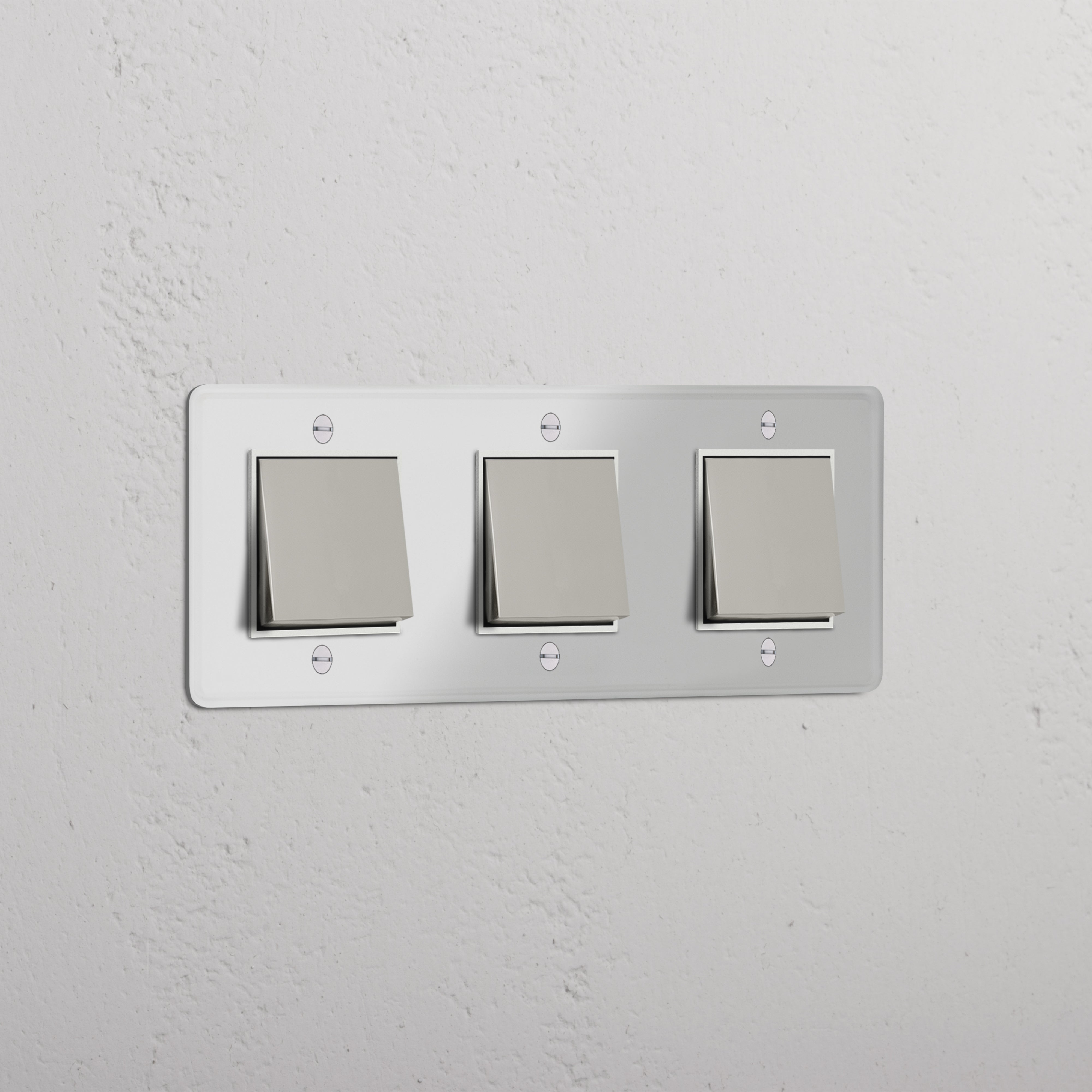 O nosso interruptor basculante comutador de escada de três vias triplo foi concebido para ser o mais elegante e intemporal possível em qualquer ambiente interior.