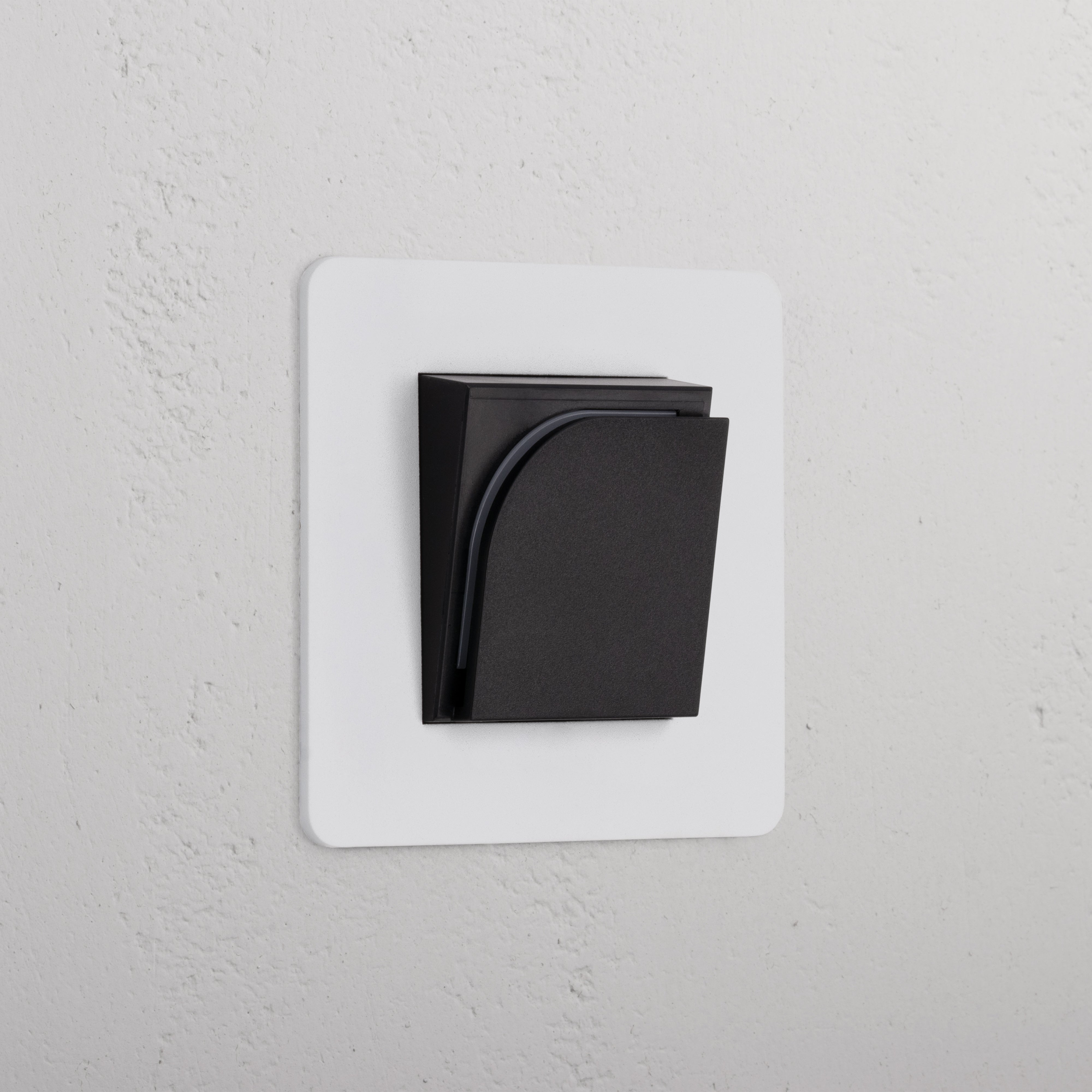 O embutido em plástico ligeiramente texturizado e de brilho reduzido em volta do interruptor vem em preto (como este) ou em branco.