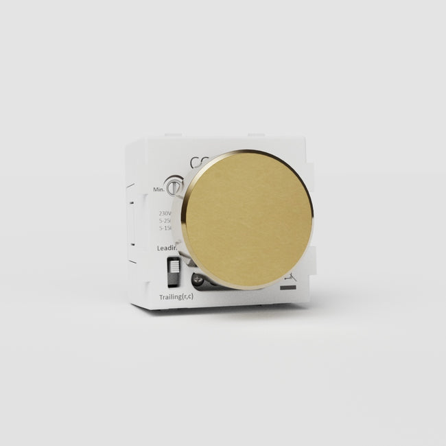 Este interruptor regulador rotativo Latão Antigo funciona com os nossos espelhos de interruptor Kew e Grove. Tem uma virola por baixo do botão rotativo que oculta todas as partes funcionais.