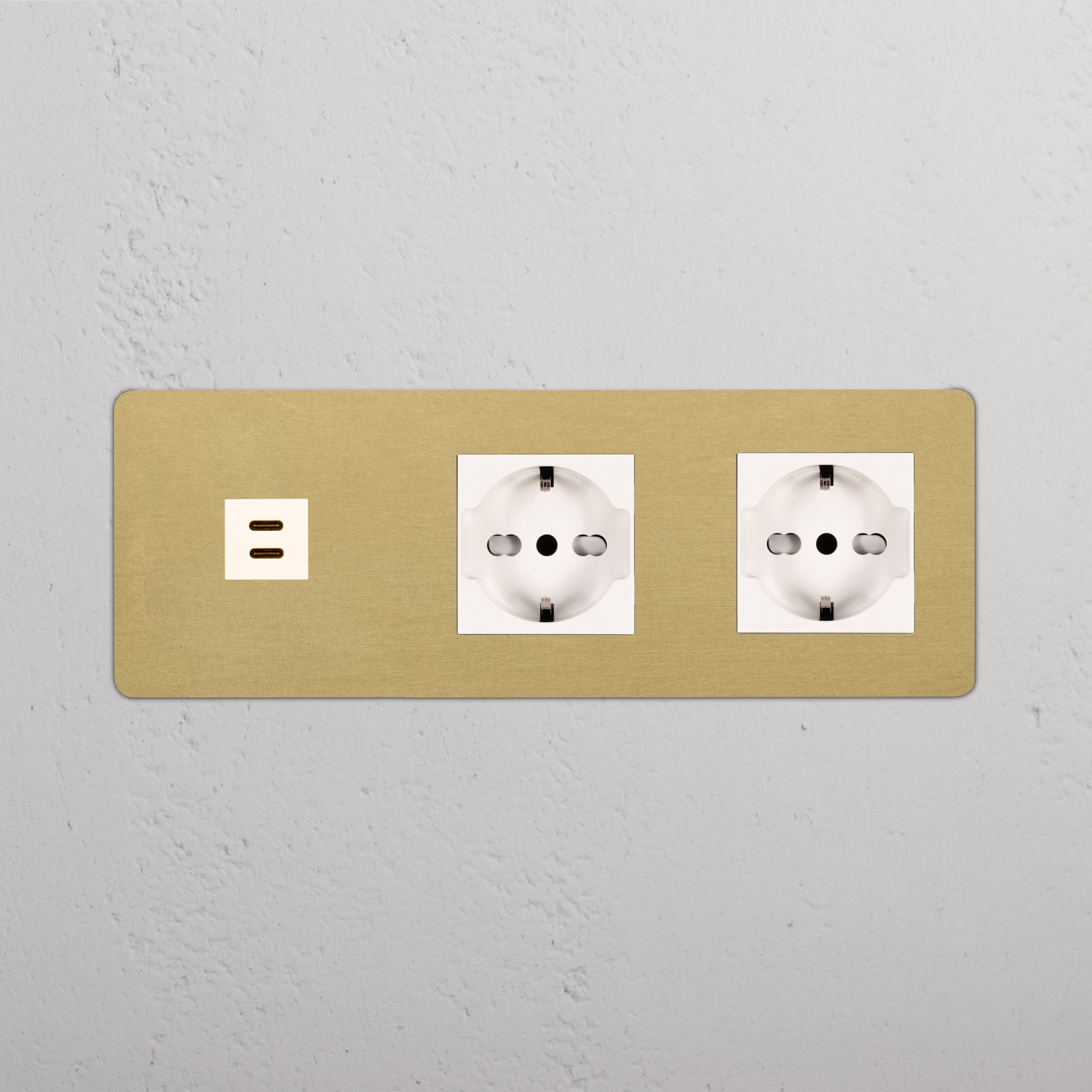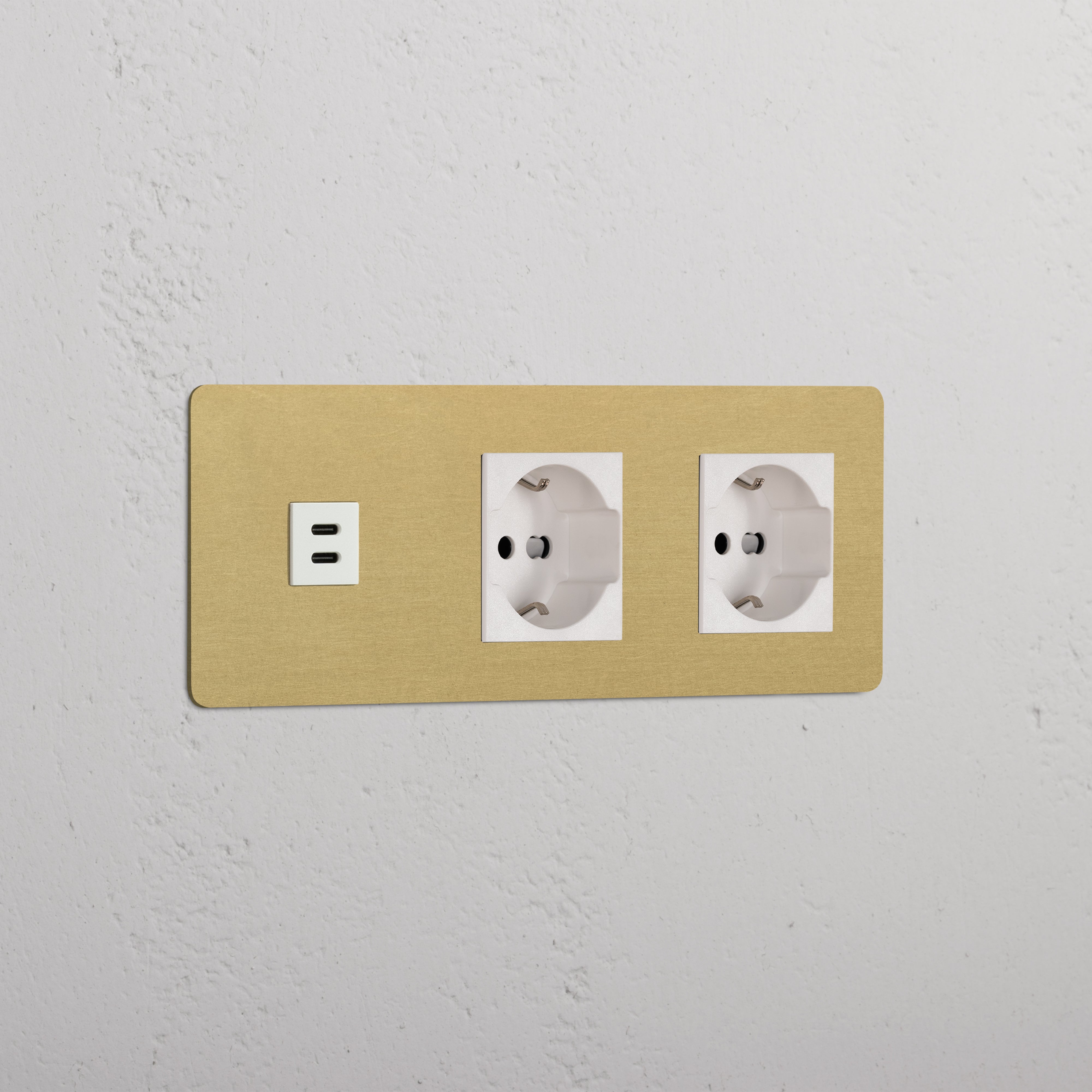 Esta tomada mista tripla combina uma tomada USB-C e duas tomadas Schuko/Bipasso num espelho.