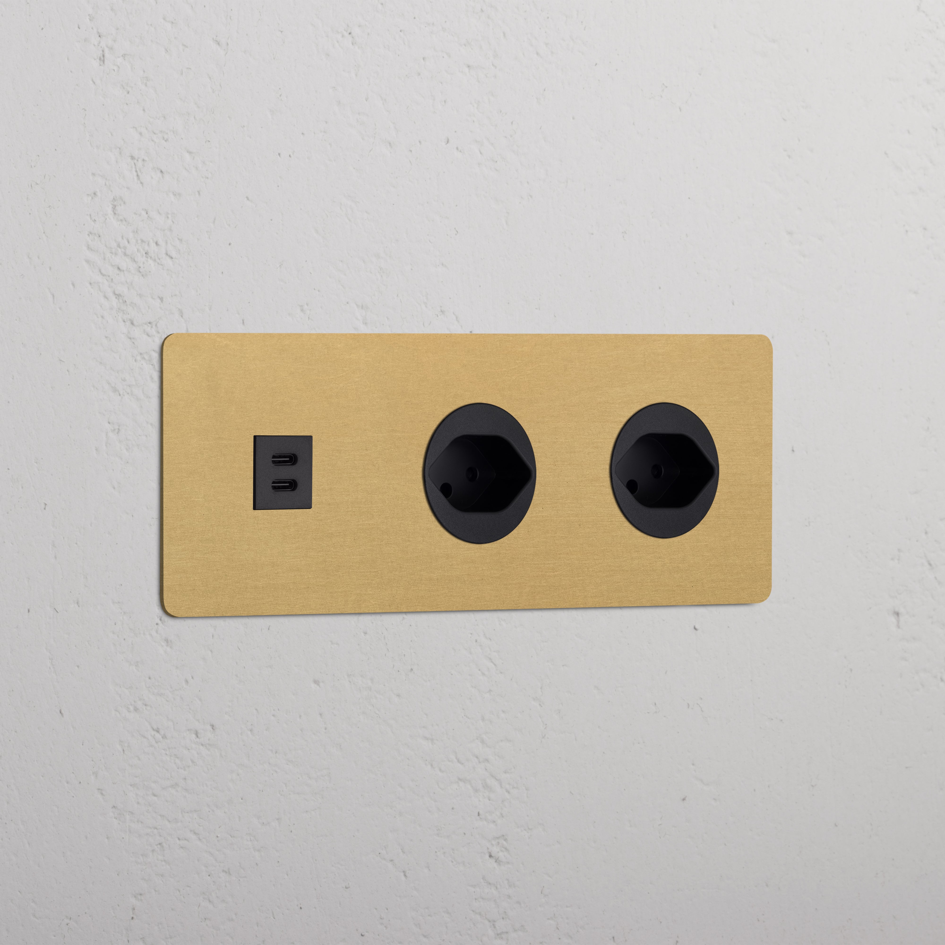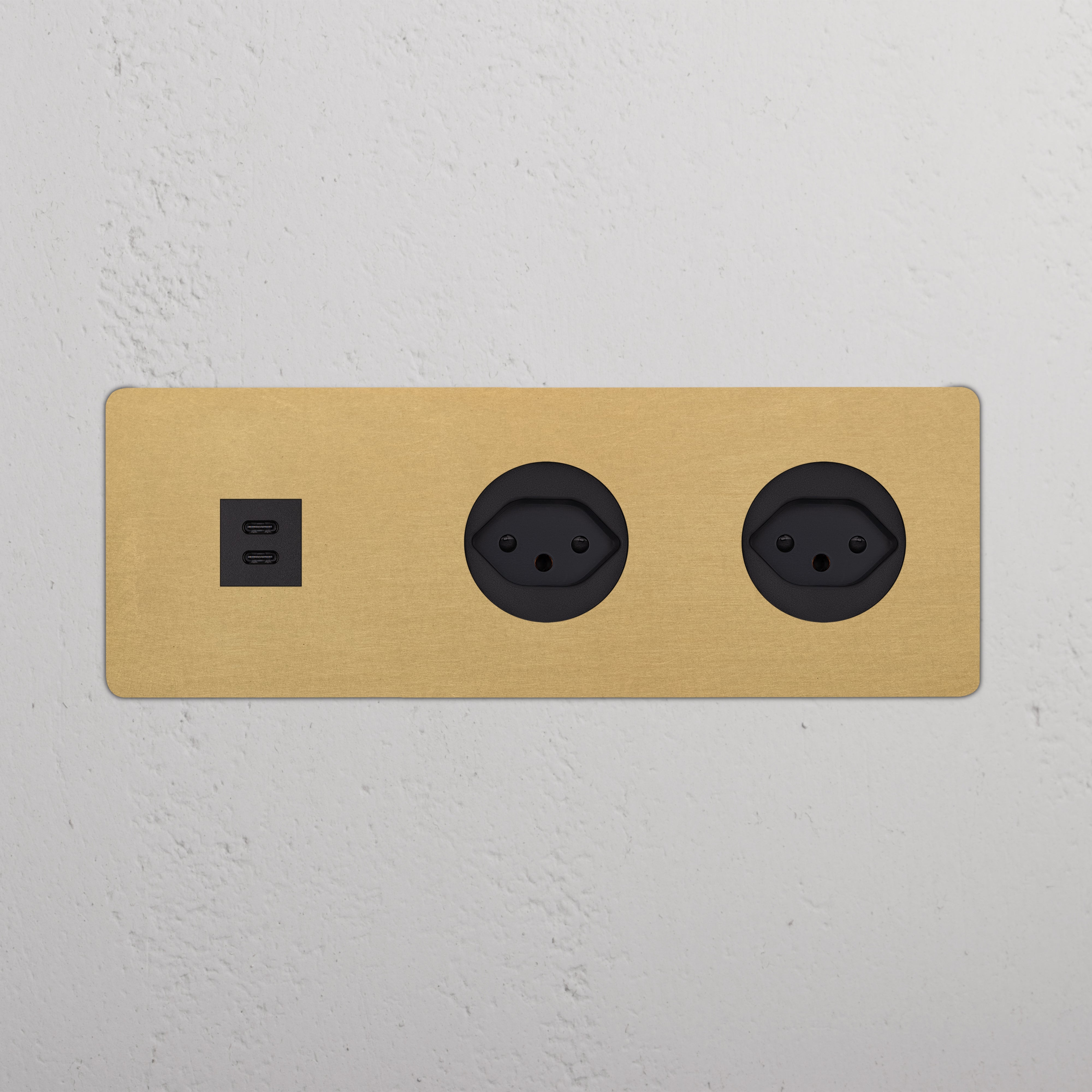 Esta tomada mista tripla combina uma tomada USB-C e duas tomadas suíças num espelho.
