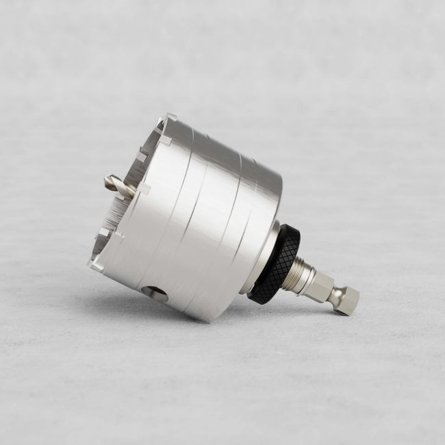Denna hålsåg med en diameter på 71 mm för tegel och de flesta andra murverk har exakt rätt storlek för installation av våra specialdesignade apparatdosor.